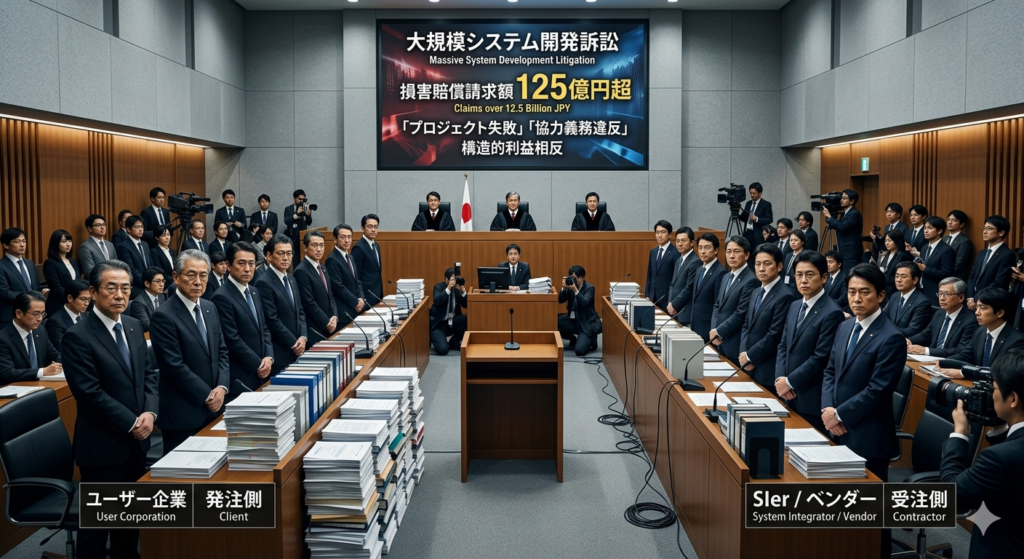 日本のシステム開発業界は、大型訴訟の頻発という形で構造的な危機を迎えている。日本通運とアクセンチュアの約125億円訴訟、三菱食品とインテックの約127億円請求、スルガ銀行と日本IBMの最高裁確定額約42億円——これらは氷山の一角に過ぎない。